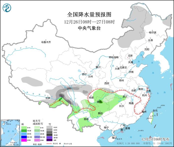全國降水量預(yù)報(bào)圖(12月26日08時(shí)-27日08時(shí))