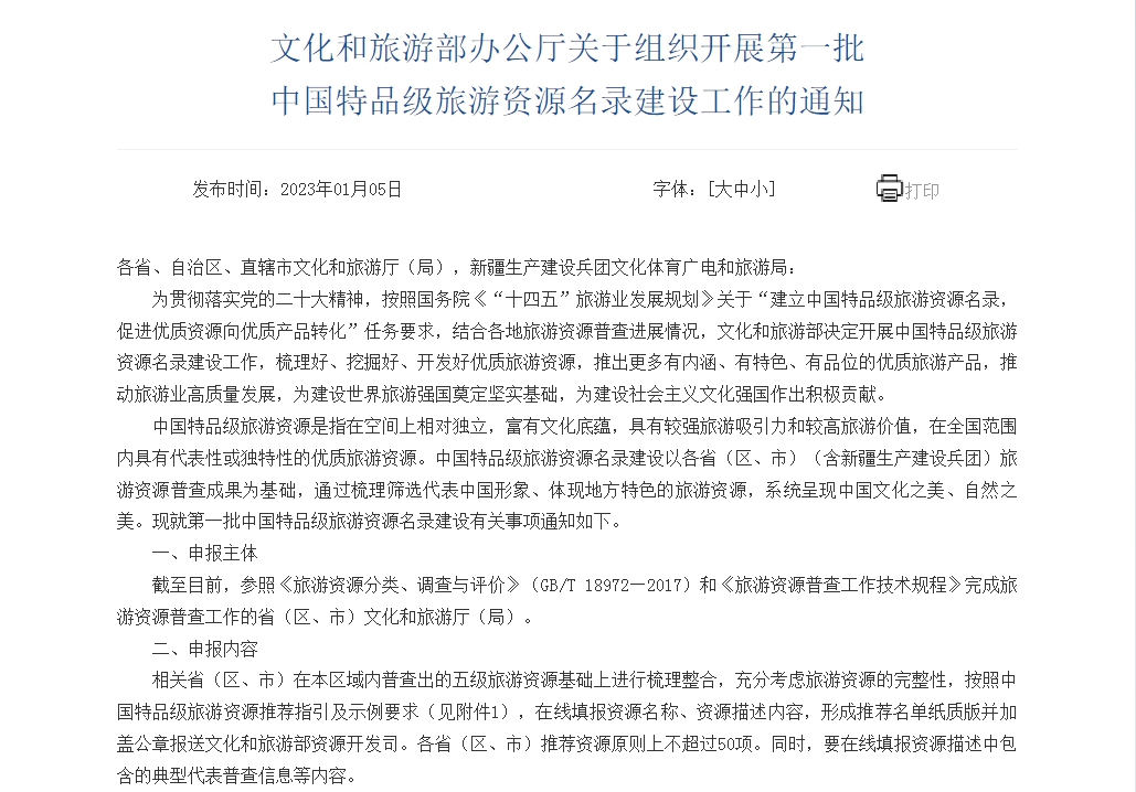文旅部:開(kāi)展第一批中國(guó)特品級(jí)旅游資源名錄建設(shè)工作