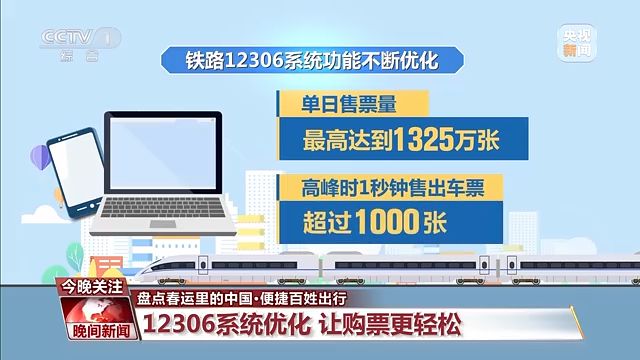 春運(yùn)出行需求上升,人們首先想問的,可能就是車票還好買嗎?作為全球訪問量和交易量最大的在線票務(wù)系統(tǒng),鐵路12306系統(tǒng)功能不斷優(yōu)化,單日售票量最高達(dá)到1325萬張,高峰時(shí)1秒鐘售出車票超過1000張。旅客每天可提交發(fā)到站相同或同城不同車站的兩個(gè)相鄰日期候補(bǔ)車票,從以前的各2張?jiān)黾拥礁?張。今年春運(yùn)期間,候補(bǔ)兌現(xiàn)成功率達(dá)到75%左右。