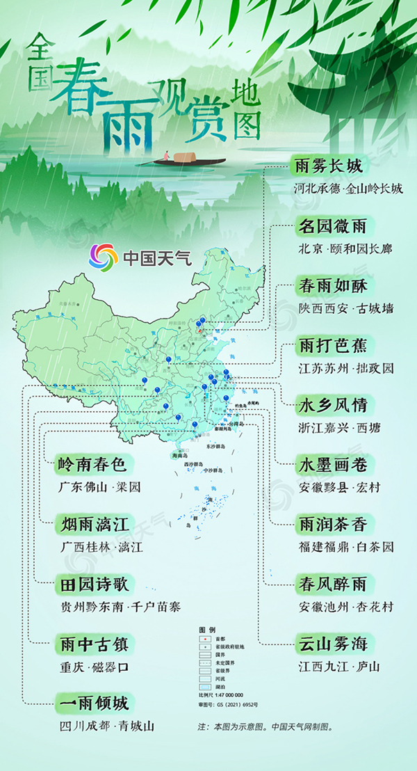春雨的形態(tài)千變?nèi)f化,人們寄托于春雨的情思也各不相同,可唯一不變的,是春雨帶來(lái)的希望。這個(gè)春天,你想去哪里邂逅一場(chǎng)春雨呢?(中國(guó)天氣網(wǎng) 策劃/張方麗 設(shè)計(jì)/張莉 數(shù)據(jù)支持/閔裕秋)