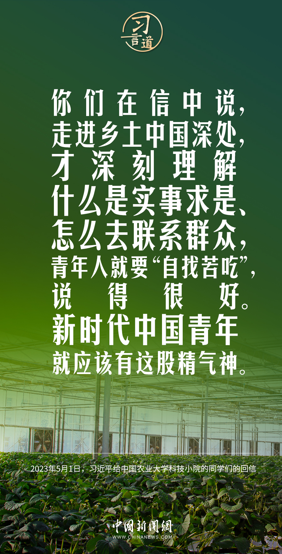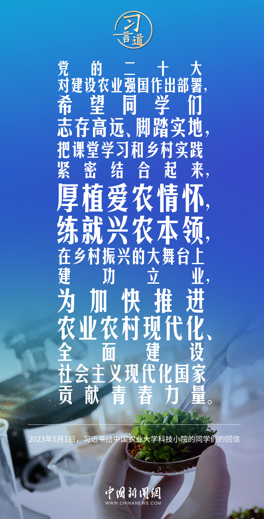5月1日,中共中央總書記、國(guó)家主席、中央軍委主席習(xí)近平在給中國(guó)農(nóng)業(yè)大學(xué)科技小院同學(xué)們的回信中指出——
