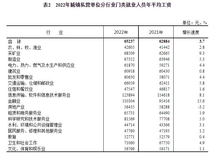 2022年城鎮(zhèn)私營單位分行業(yè)門類就業(yè)人員年平均工資。來自國家統(tǒng)計(jì)局網(wǎng)站