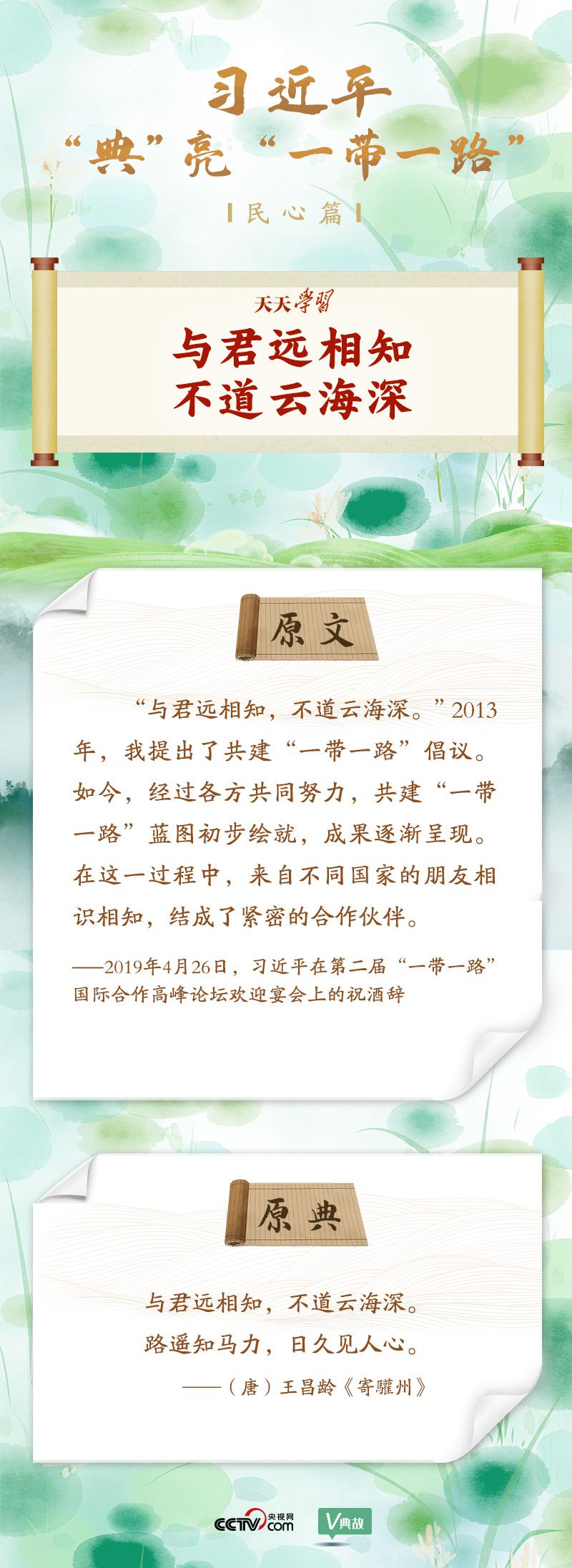 在國(guó)內(nèi)國(guó)際多個(gè)重要場(chǎng)合,習(xí)近平主席頻頻引經(jīng)據(jù)典,介紹“一帶一路”承載的厚重歷史,闡述“一帶一路”建設(shè)的理念和重大意義,描繪“一帶一路”美好的發(fā)展愿景。央視網(wǎng)《天天學(xué)習(xí)》欄目特選取習(xí)近平主席的部分用典,與您一起學(xué)習(xí)領(lǐng)會(huì)。