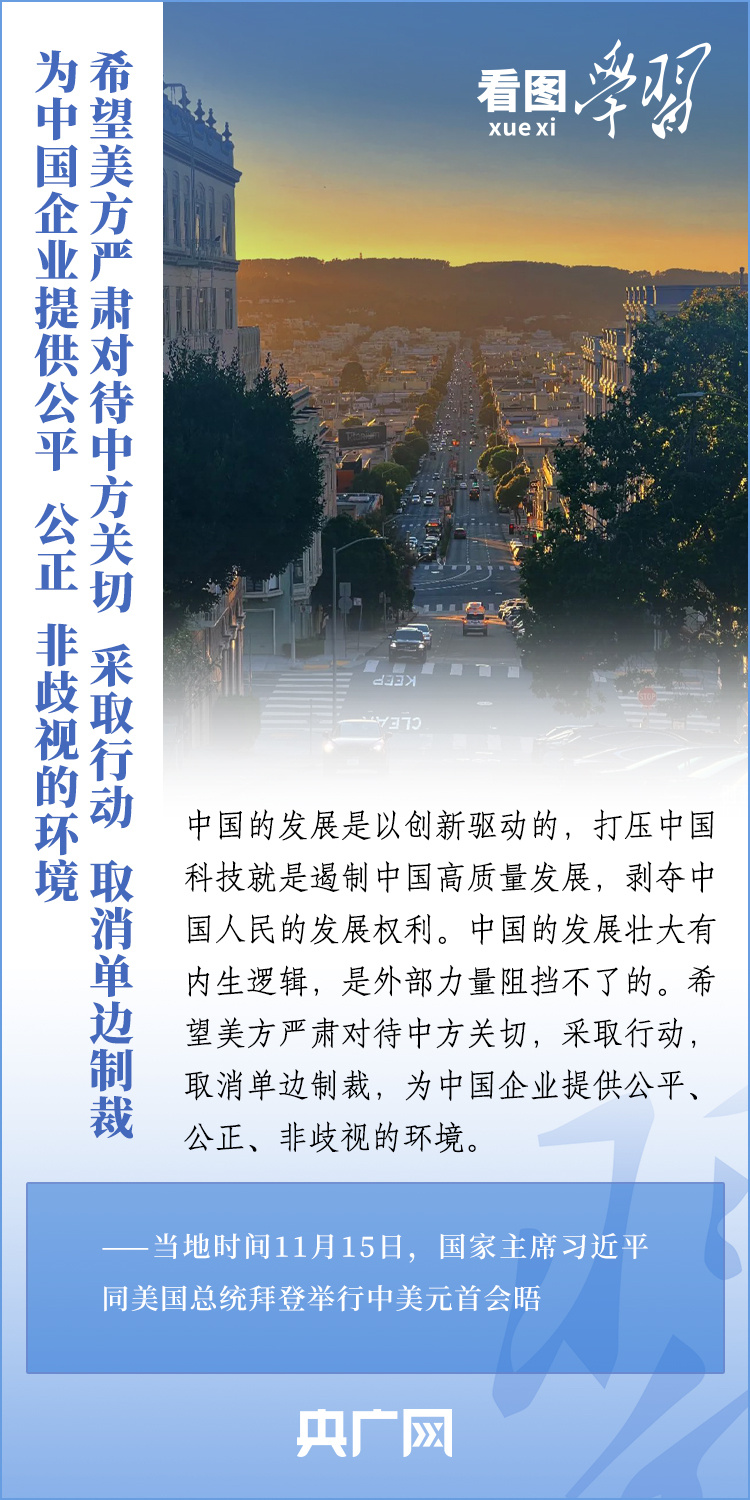 當(dāng)?shù)貢r(shí)間11月15日,國家主席習(xí)近平在美國舊金山斐洛里莊園同美國總統(tǒng)拜登舉行中美元首會(huì)晤。兩國元首就事關(guān)中美關(guān)系的戰(zhàn)略性、全局性、方向性問題以及事關(guān)世界和平和發(fā)展的重大問題坦誠深入地交換了意見。習(xí)近平主席指出,大國競爭解決不了中美兩國和世界面臨的問題。這個(gè)地球容得下中美兩國。中美各自的成功是彼此的機(jī)遇。一起來學(xué)習(xí)!