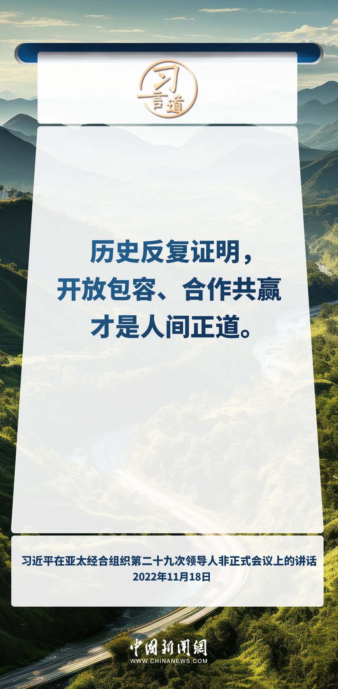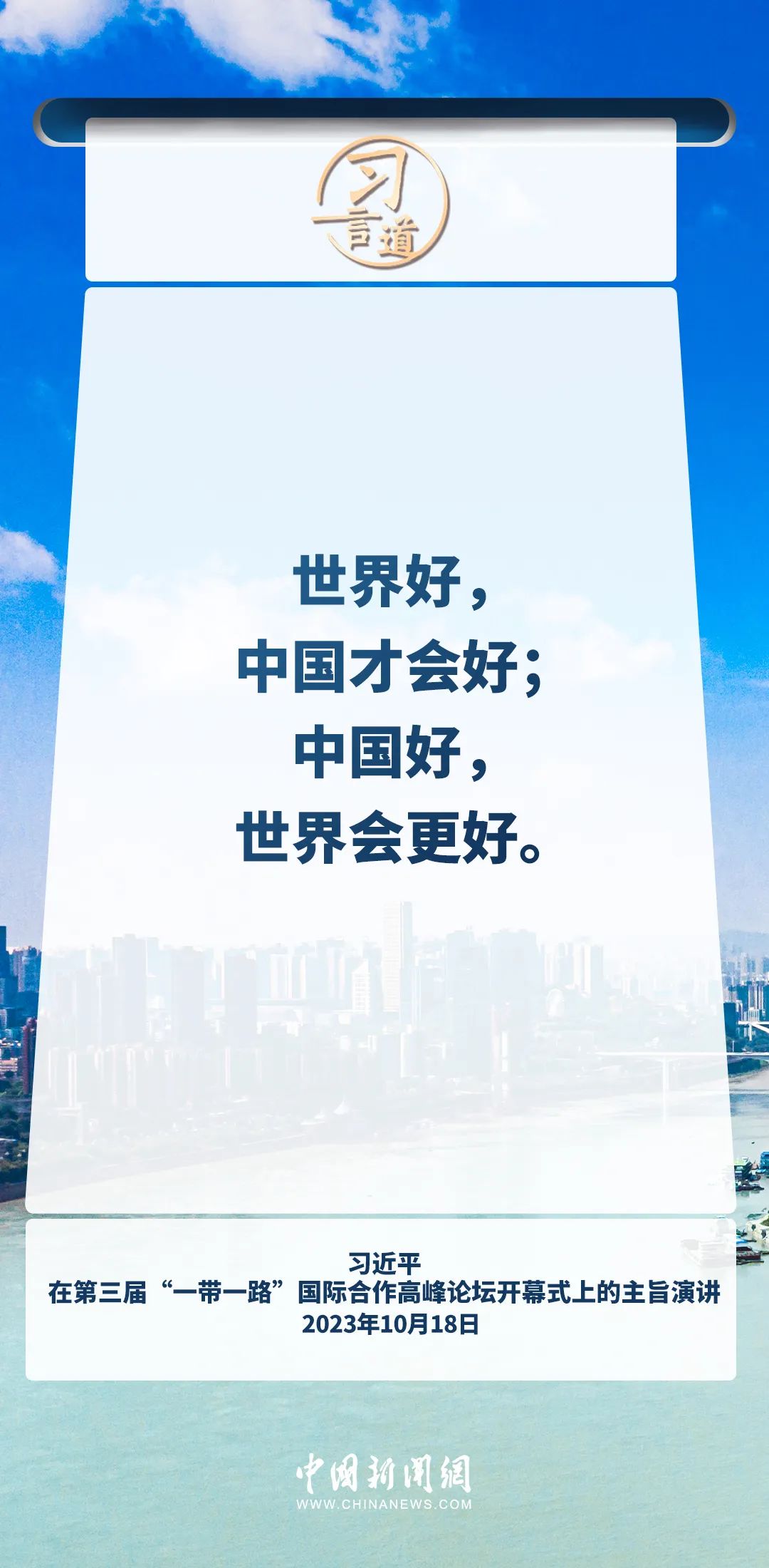 世界好,中國才會好;中國好,世界會更好。習(xí)近平主席在多個重要場合對人類命運(yùn)共同體理念進(jìn)行全面深刻論述,強(qiáng)調(diào)開放包容、合作共贏才是人間正道。