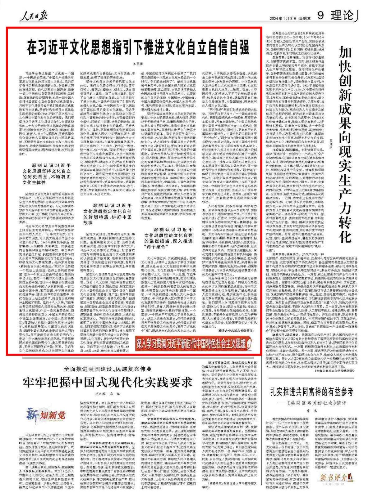人民日報(bào)刊發(fā)王蒙徽署名文章:在習(xí)近平文化思想指引下推進(jìn)文化自立自信自強(qiáng)