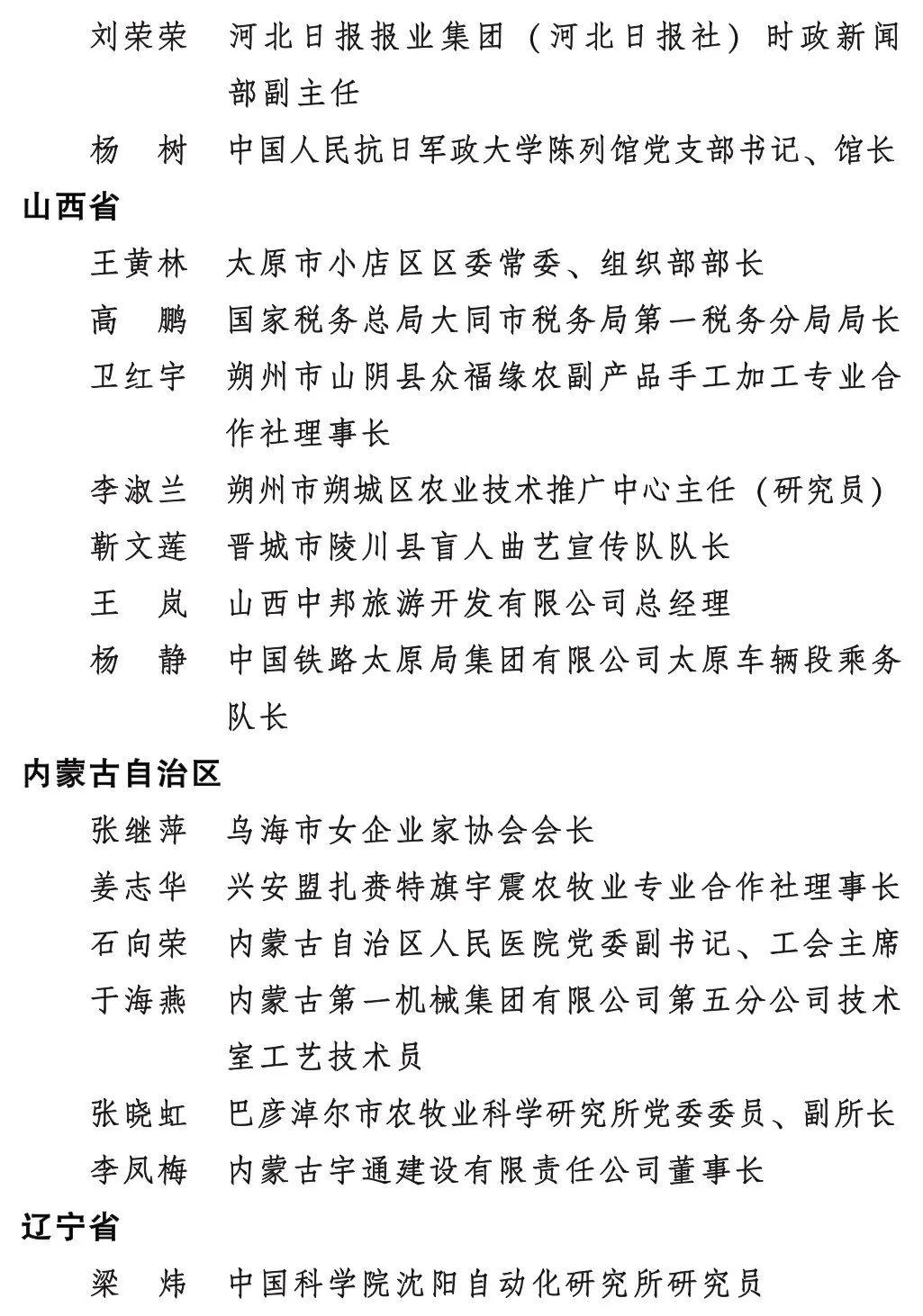 全國三八紅旗手標(biāo)兵名單