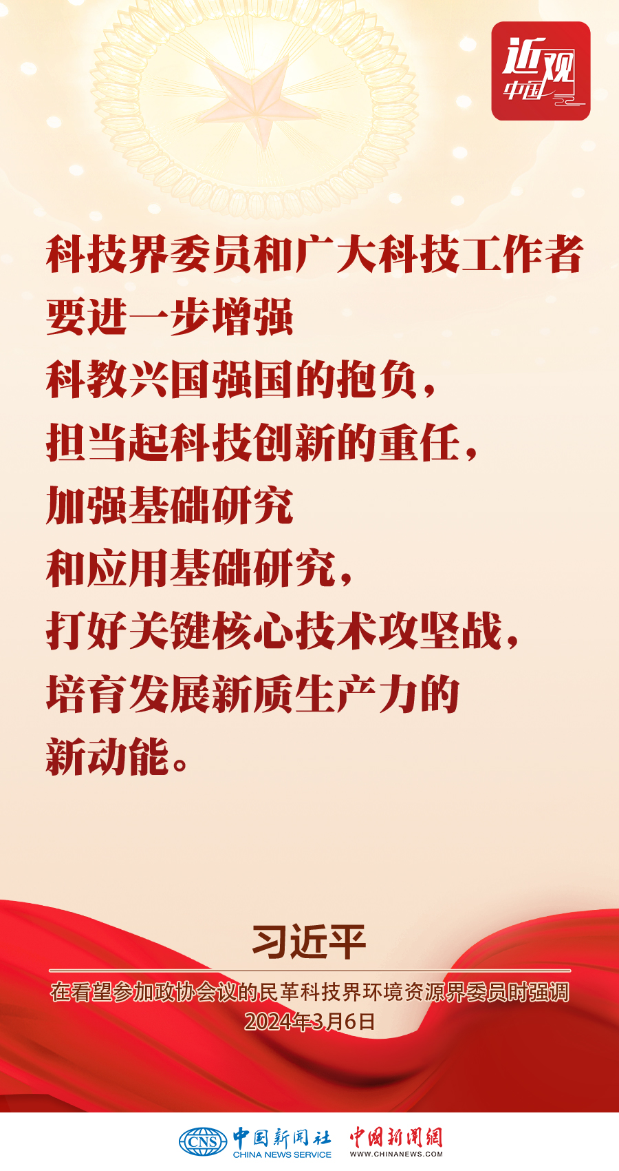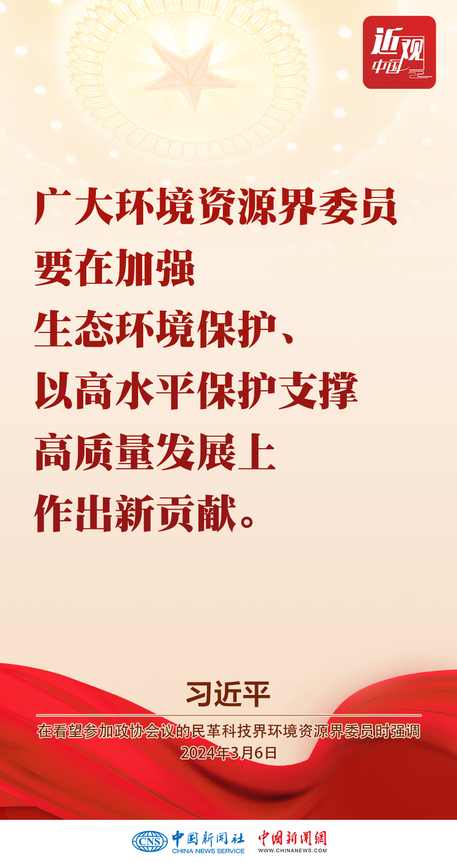 3月6日,中共中央總書記、國家主席、中央軍委主席習(xí)近平看望參加全國政協(xié)十四屆二次會(huì)議的民革、科技界、環(huán)境資源界委員,并參加聯(lián)組會(huì),聽取意見和建議。他強(qiáng)調(diào)——