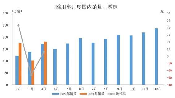 2024年3月,乘用車(chē)國(guó)內(nèi)銷(xiāo)量181.2萬(wàn)輛,環(huán)比增長(zhǎng)78.1%,同比增長(zhǎng)5.8%。