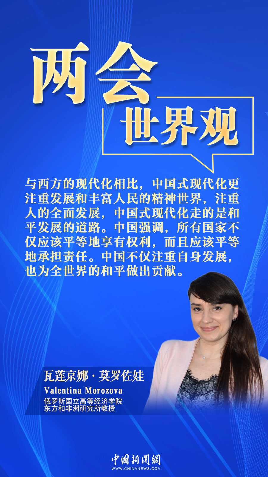 中新網(wǎng)3月16日電(張乃月)近日,俄羅斯國立高等經(jīng)濟學院東方和非洲研究所教授莫羅佐娃接受中新網(wǎng)采訪時,肯定了中國建設(shè)性地參與全球治理的態(tài)度,關(guān)注中國以自身高質(zhì)量發(fā)展和經(jīng)濟、科技、文化實力,為加強世界各國人民、各國間的聯(lián)系做出貢獻。