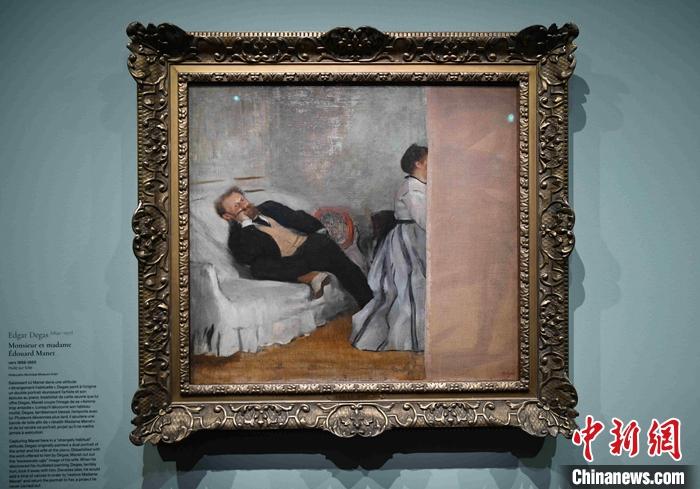 圖為展覽中展出的德加所作油畫《馬奈夫婦》,該畫成為導(dǎo)致馬奈與德加關(guān)系瓦解的導(dǎo)火索。 中新社記者 李洋 攝