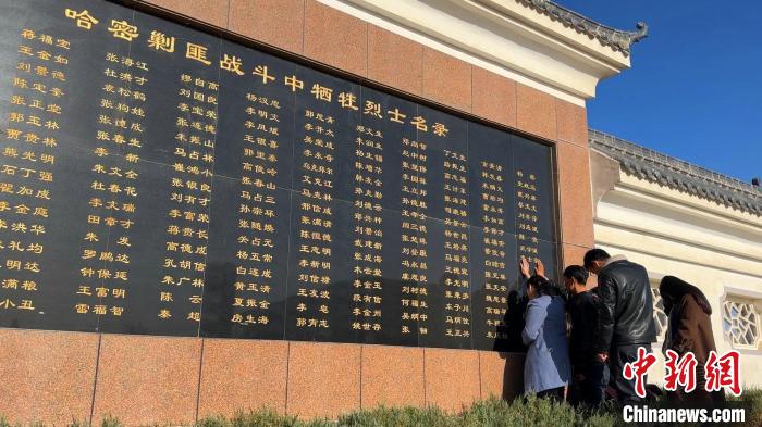 清明節(jié)前夕,在新疆哈密烈士陵園哈密剿匪戰(zhàn)斗中犧牲烈士名錄墻前(以下簡稱“英名墻”),竇來強(qiáng)、竇剛強(qiáng)、竇瑞琴、竇調(diào)蕊、焦霞霞五位從甘肅天水趕來的年輕人,撫摸著“英名墻”上其中一個(gè)名字,放聲痛哭。