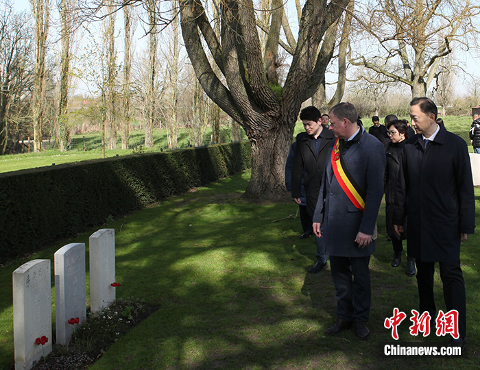 中新社比利時(shí)波普林格4月5日電 (記者 德永健)4月5日清明節(jié),中國和比利時(shí)官員來到曾經(jīng)的一戰(zhàn)主戰(zhàn)場比利時(shí)波普林格市,祭掃長眠在此的一戰(zhàn)華工。