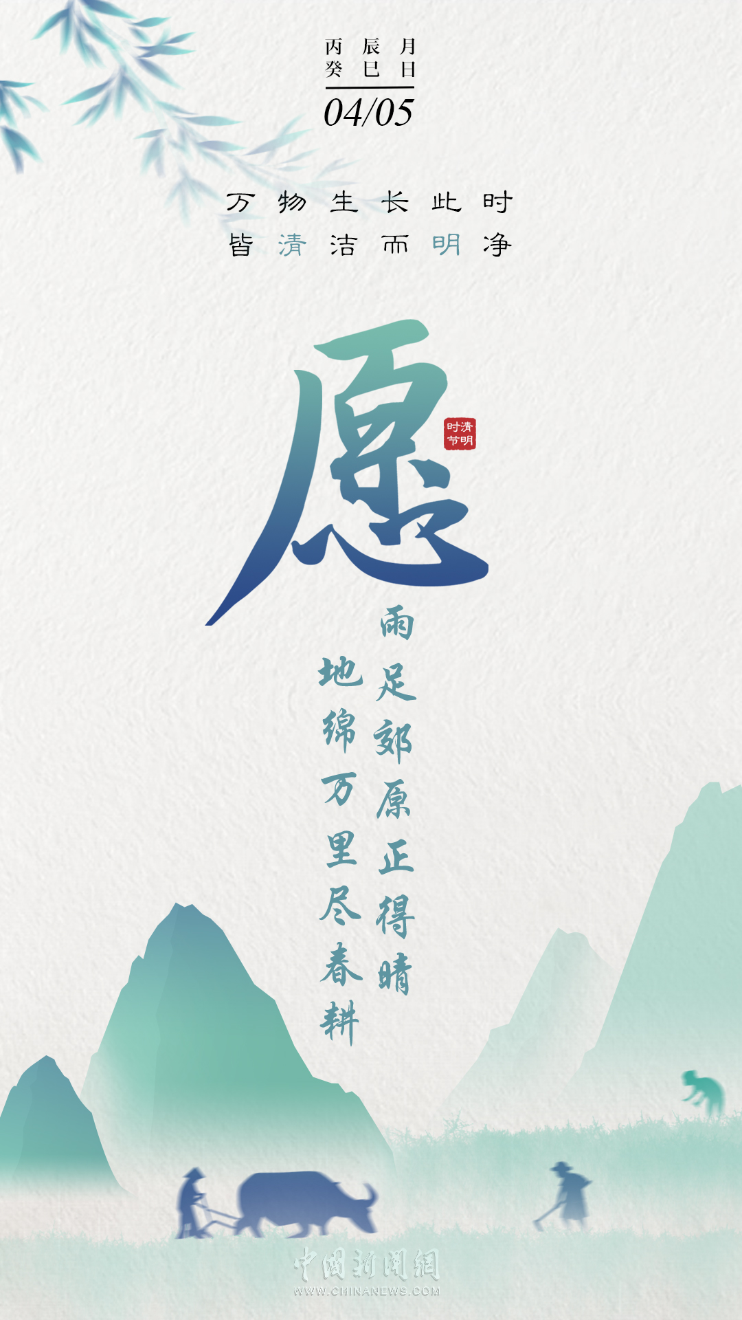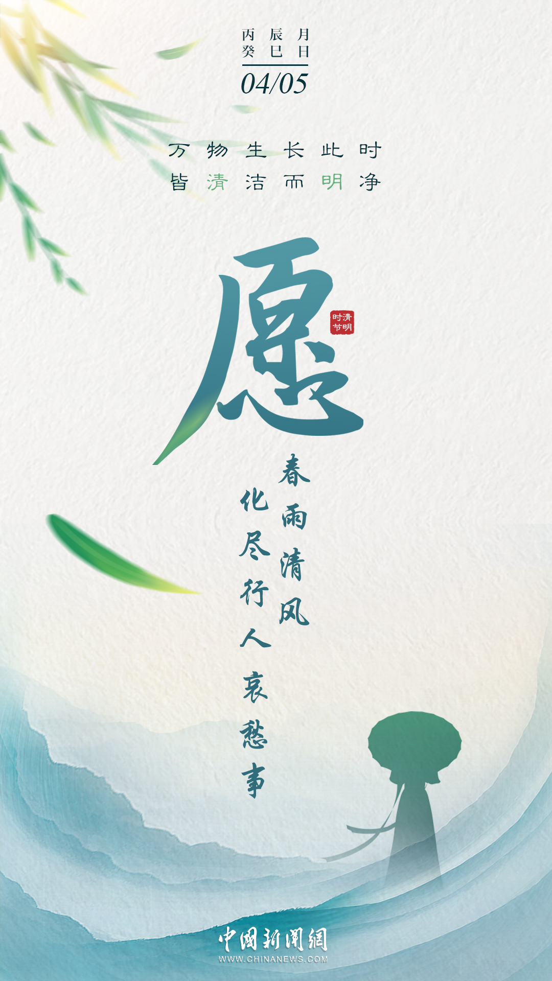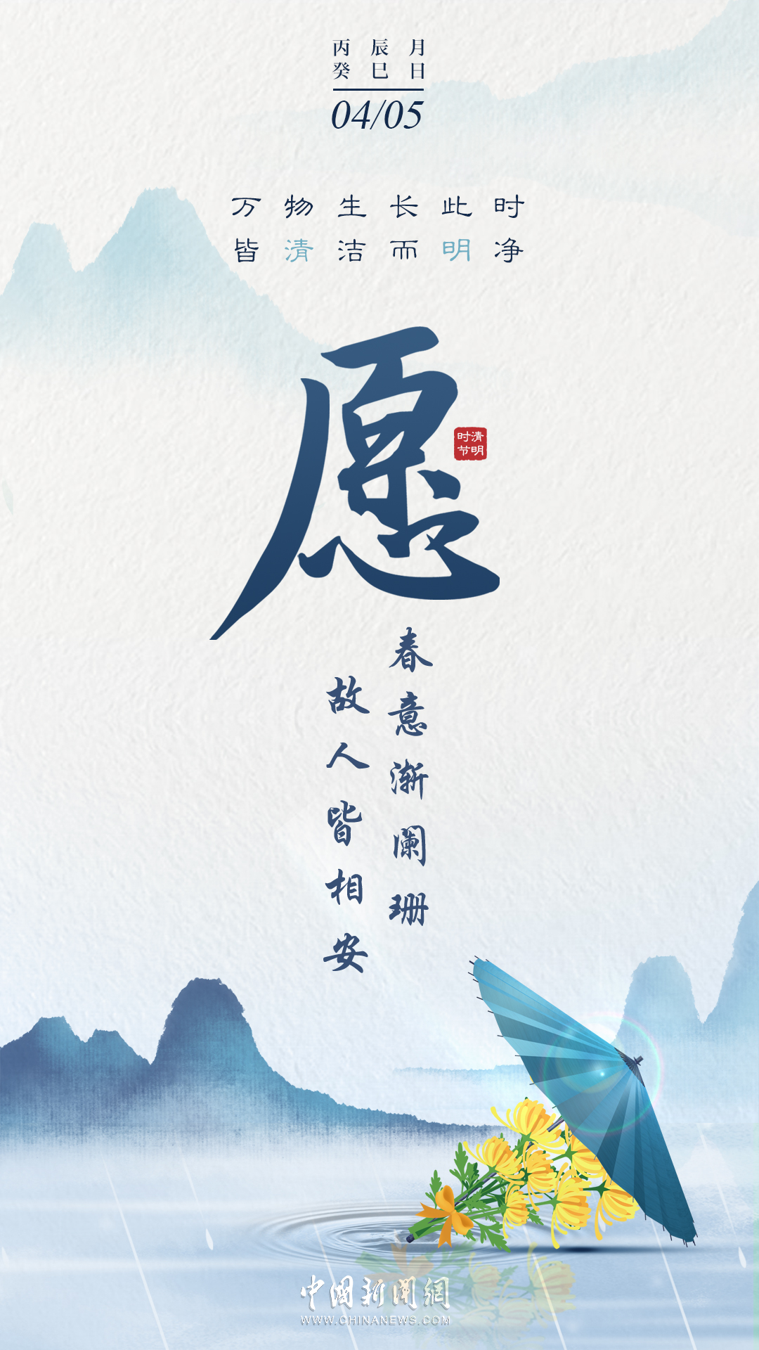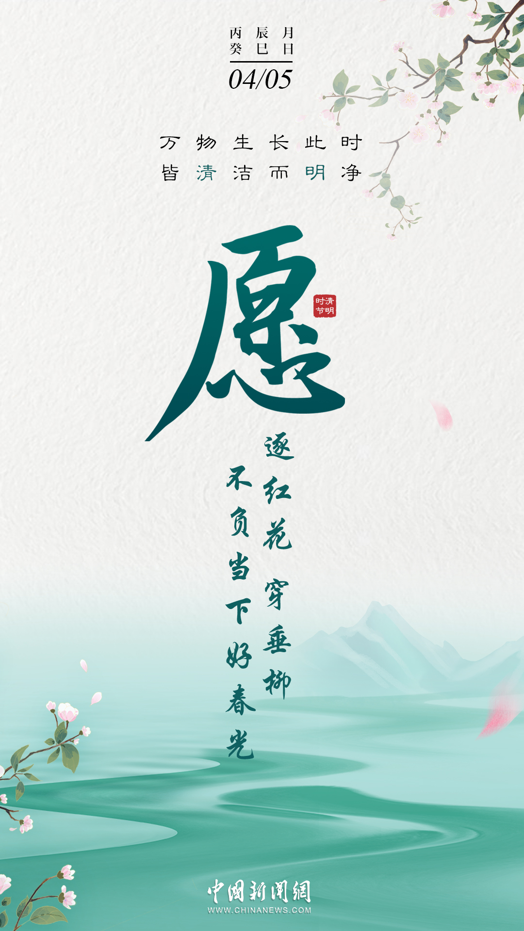 萬(wàn)物生長(zhǎng)此時(shí),皆清潔而明凈,故謂之清明。桐花開(kāi),虹始見(jiàn),草長(zhǎng)鶯飛時(shí),攜好友二三逐紅花,穿垂柳,紛紛春雨和縷縷清風(fēng)化盡了路上行人的哀愁事。今日清明,愿萬(wàn)里氣清景明,你我心清目明。