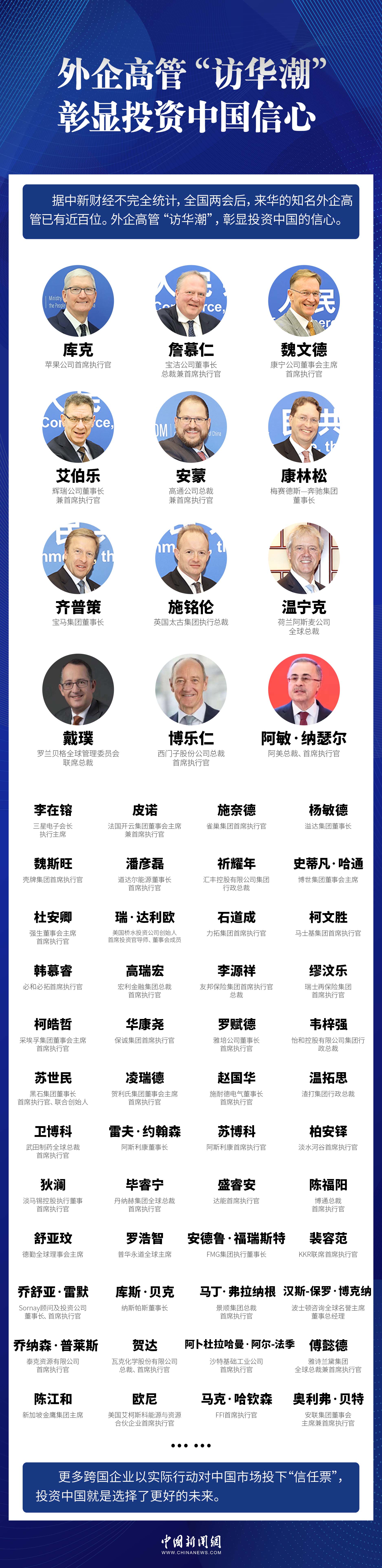 中新網(wǎng)北京4月7日電 (記者 李金磊)時下,外企高管正掀起“訪華潮”。據(jù)中新財(cái)經(jīng)不完全統(tǒng)計(jì),全國兩會后,來華的知名外企高管已有近百位。