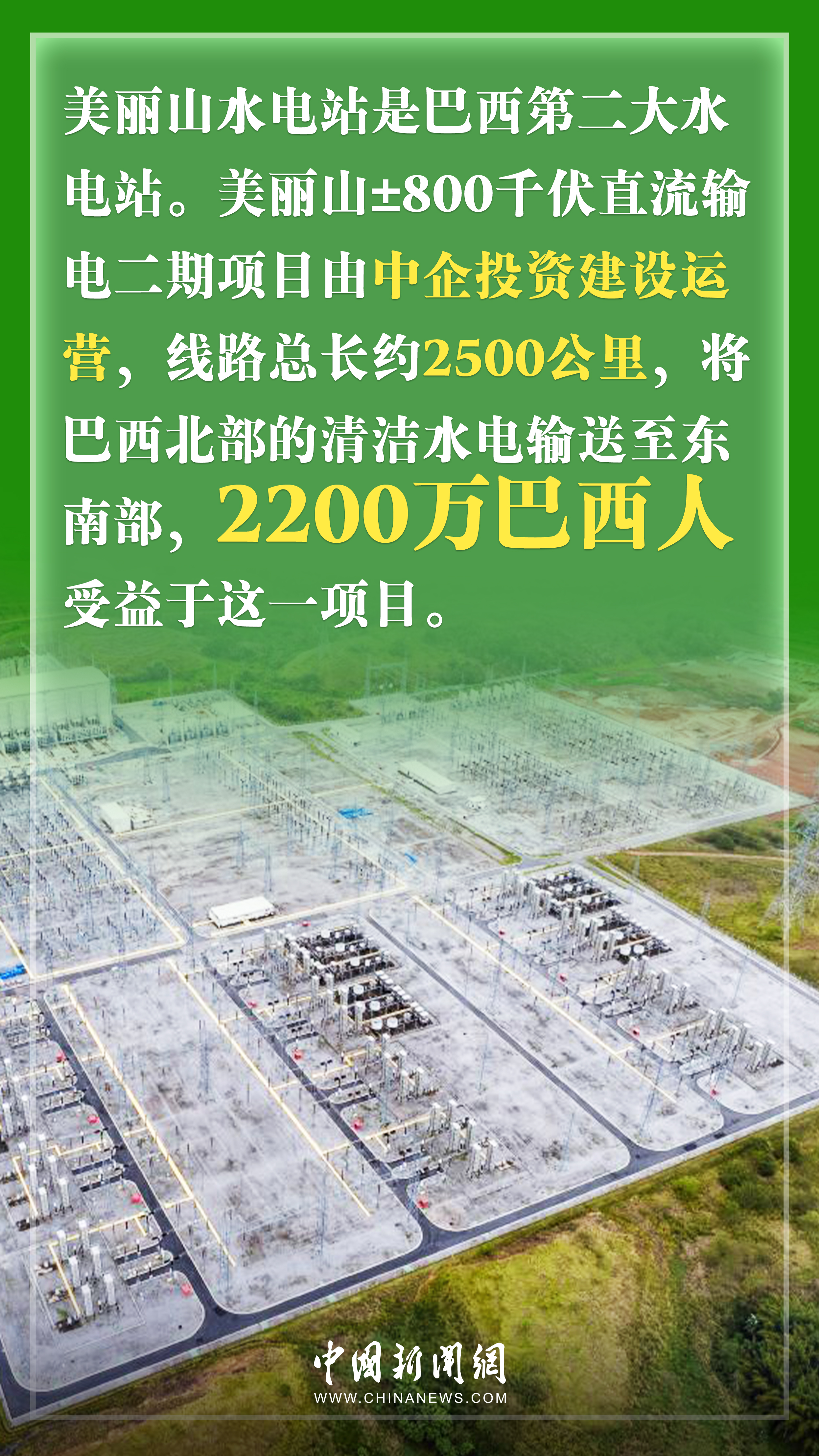 據(jù)中國(guó)官方媒體報(bào)道,2022年中巴雙邊貿(mào)易額為1714.9億美元,中國(guó)連續(xù)14年成為巴西最大貿(mào)易伙伴。截至2022年年底,人民幣已經(jīng)取代歐元成為巴西外匯儲(chǔ)備中第二重要的貨幣;中企投資建設(shè)運(yùn)營(yíng)的美麗山特高壓直流輸電二期項(xiàng)目,線路總長(zhǎng)約2500公里,令2200萬(wàn)巴西人受益,相當(dāng)于巴總?cè)丝诘?0%……