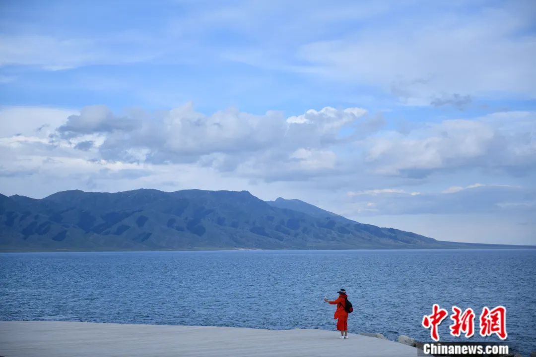 位于天山山脈的新疆賽里木湖景區(qū)內(nèi),湛藍(lán)的湖水與天一色,同遠(yuǎn)處山峰相映成畫。張興龍 攝