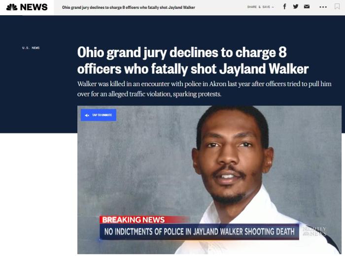 NBC指出,沃克之死引發(fā)了阿克倫數日的示威活動,并再次引發(fā)了關于警察針對非裔暴力執(zhí)法的抗議。