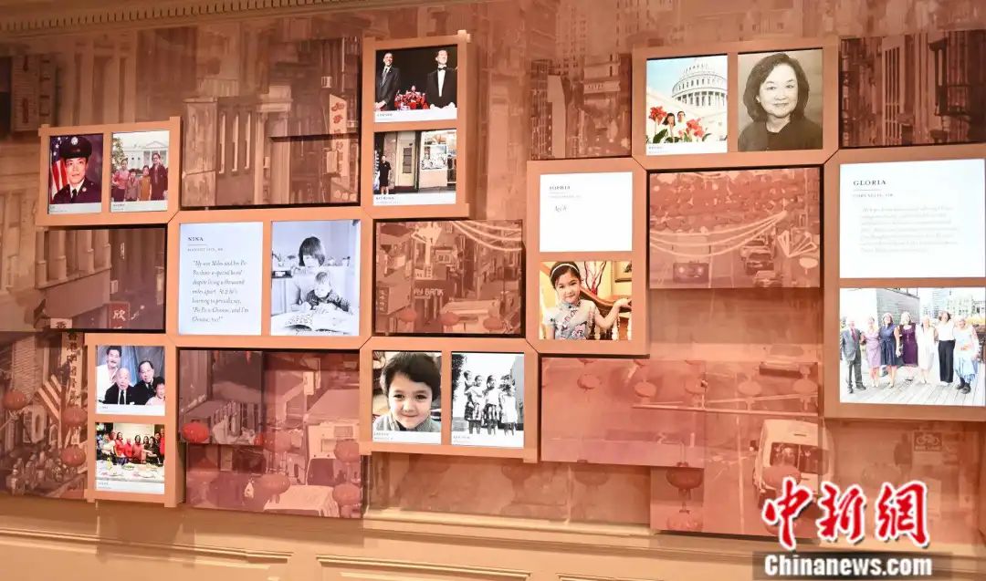華盛頓美國華人博物館內(nèi)的美國華人數(shù)字照片墻。陳孟統(tǒng)攝