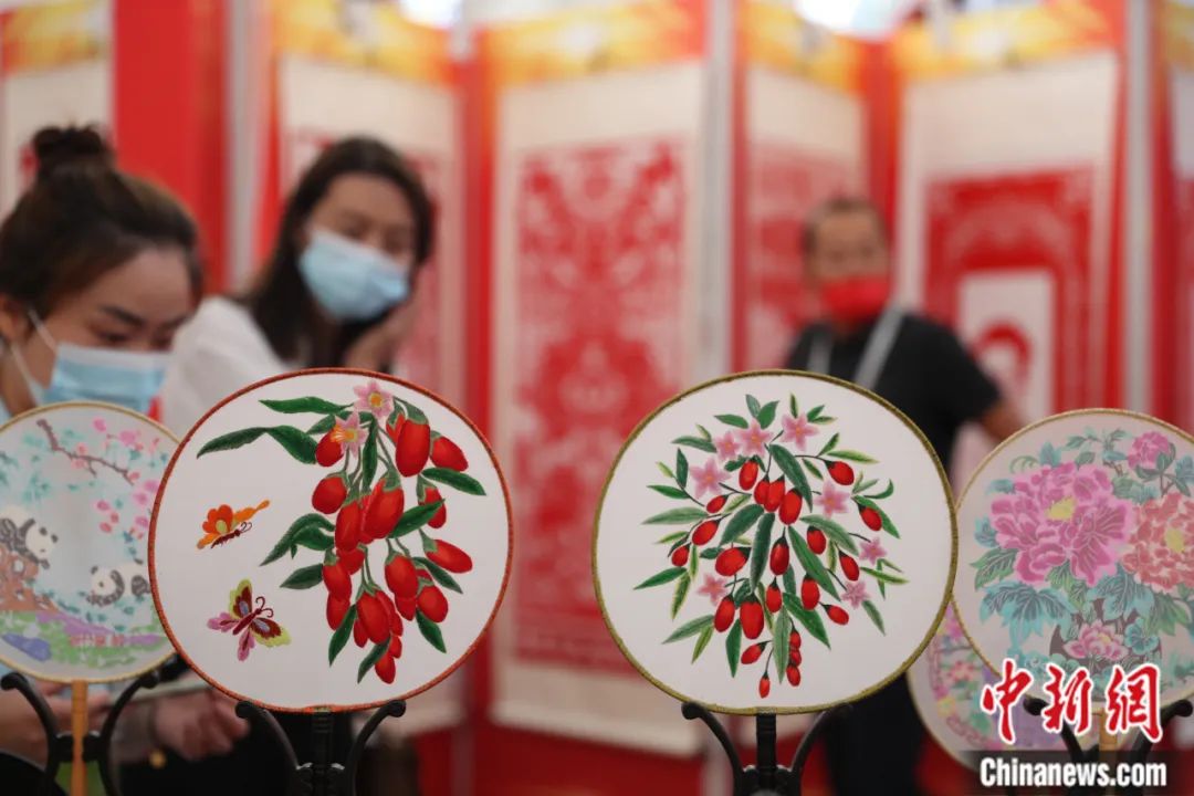 枸杞題材刺繡作品。于晶 攝