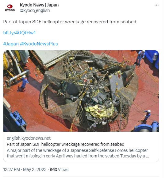 日媒援引政府消息人士稱,為查明事故原因,陸上自衛(wèi)隊(duì)正在檢查直升機(jī)的飛行記錄儀以及被撈起回收的部分,但這一部分受損嚴(yán)重,幾乎無(wú)法辨認(rèn)。