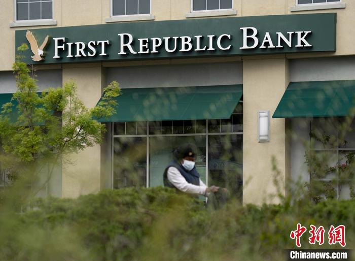 當(dāng)?shù)貢r間5月1日,行人從美國加州米爾布雷市一家第一共和銀行附近經(jīng)過。 中新社記者 劉關(guān)關(guān) 攝