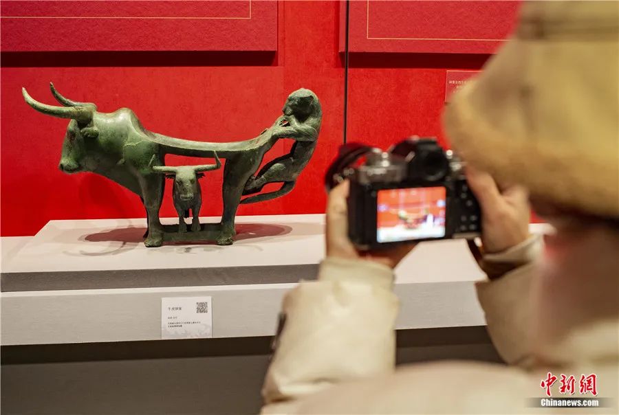 此外,還有專(zhuān)家延伸解讀:在古滇國(guó),虎為百獸之王,象征權(quán)威,牛則是財(cái)富和生命的標(biāo)志。?;~案中的虎、牛形象成為滇人重點(diǎn)表達(dá)的主題,顯示了滇人崇虎、崇牛之情,表達(dá)了對(duì)權(quán)力、財(cái)富和生命的向往。