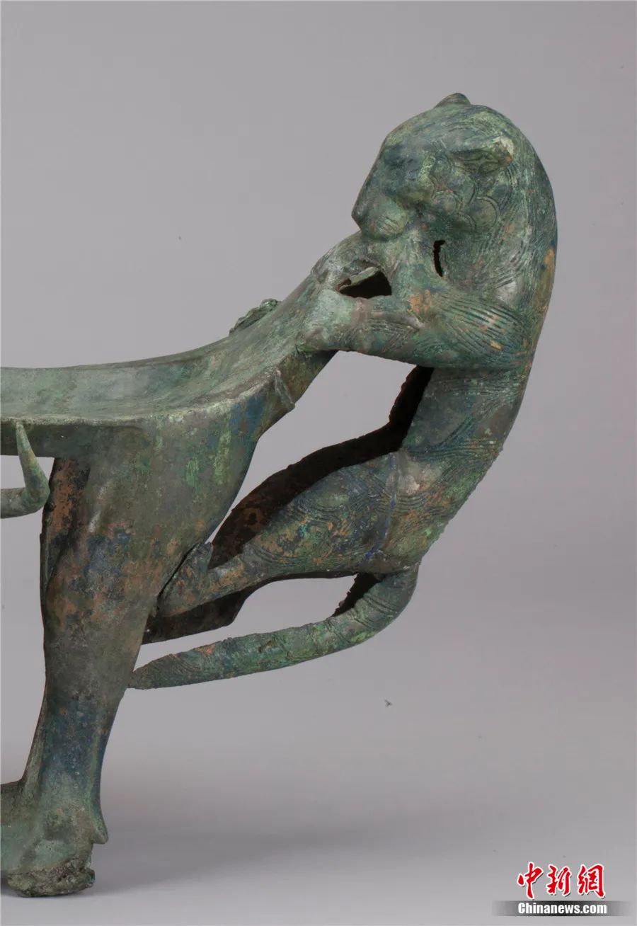 中新社記者:在中國(guó)文博界流傳著“北有馬踏飛燕,南有牛虎銅案”的說(shuō)法,?;~案何以被稱(chēng)為滇文化青銅工藝最高水平的代表作?