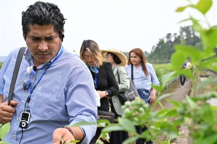 5月2日,洪都拉斯媒體代表團代表團走進重慶市南川區(qū)大觀鎮(zhèn)藍莓產業(yè)示范基地。新華社記者 趙佳樂 攝