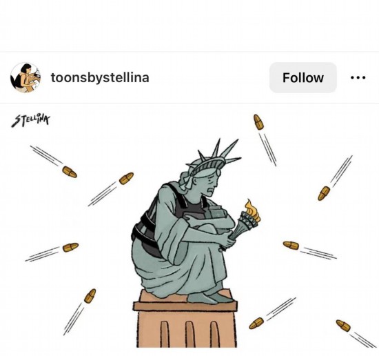 面對已經(jīng)成為“日?!钡臉寭舭?,海外網(wǎng)友創(chuàng)作了大量時事漫畫,諷刺美國政府面對槍支暴力冷漠麻木,任由民眾不斷倒在槍口之下。盡管漫畫一幅比一幅犀利,但有美國網(wǎng)友直言:再犀利的漫畫也無法觸動美國政客,讓他們改變現(xiàn)狀。