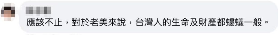 “對(duì)于老美來說,臺(tái)灣人的生命及財(cái)產(chǎn)都螻蟻一般?!?/p>