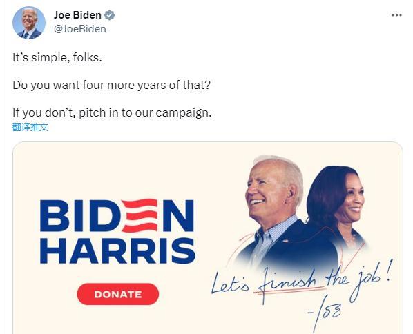 CNN注意到,在特朗普的直播結(jié)束后不久,美國(guó)總統(tǒng)拜登在社交媒體上發(fā)出了政治籌款呼吁,并配文稱(chēng),“很簡(jiǎn)單,伙計(jì)們。 你還想再那樣過(guò)四年嗎?如果你不喜歡,請(qǐng)參與我們的競(jìng)選活動(dòng)。”