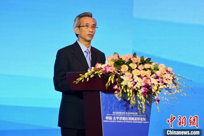 圖為5月12日,林松添在福州舉辦的中國-太平洋地區(qū)民間友好論壇上致辭。 中新社記者 王東明 攝