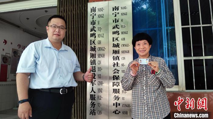 梁洲輔5月11日順利幫助母親辦理了武鳴區(qū)城鄉(xiāng)居民基本養(yǎng)老保險(xiǎn)和醫(yī)療保險(xiǎn),并成為廣西首例辦理了臺(tái)灣居民居住證但沒有在當(dāng)?shù)鼐蜆I(yè),亦可成功辦理城鄉(xiāng)居民基本養(yǎng)老保險(xiǎn)的臺(tái)胞。梁洲輔為母親按每年6000元(人民幣,下同)進(jìn)行繳費(fèi),一次性補(bǔ)繳了15年共9萬元的養(yǎng)老金。今年6月起,張?jiān)孪济吭卤憧深I(lǐng)到800多元的養(yǎng)老金。當(dāng)天,張?jiān)孪家渤晒k理了城鄉(xiāng)居民基本醫(yī)療保險(xiǎn)。