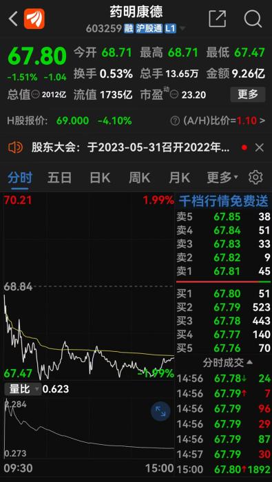 頂著“醫(yī)藥獨角獸”光環(huán)的藥明康德股價曾一路飛漲,登陸A股僅用了14個交易日就突破了千億元市值,創(chuàng)造出A股的一大“奇觀”。