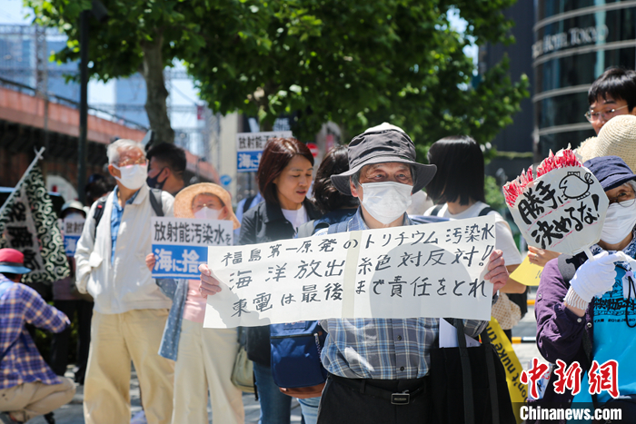 5月16日,日本民眾在東京電力公司總部前舉行集會,表達(dá)對日本政府和東京電力公司持續(xù)強(qiáng)推福島核污染水排海計(jì)劃的強(qiáng)烈反對。 中新社發(fā) 蔣文月 攝
