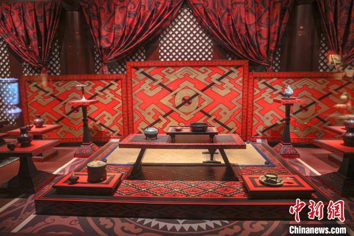 南昌漢代?;韬顕?guó)考古遺址公園內(nèi)的“禮樂(lè)宴饗”展區(qū)?!≈行律缬浾?劉力鑫 攝
