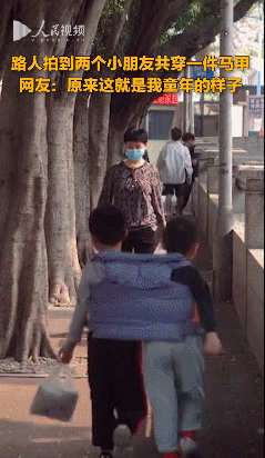 兩名小男孩共穿一件馬甲
