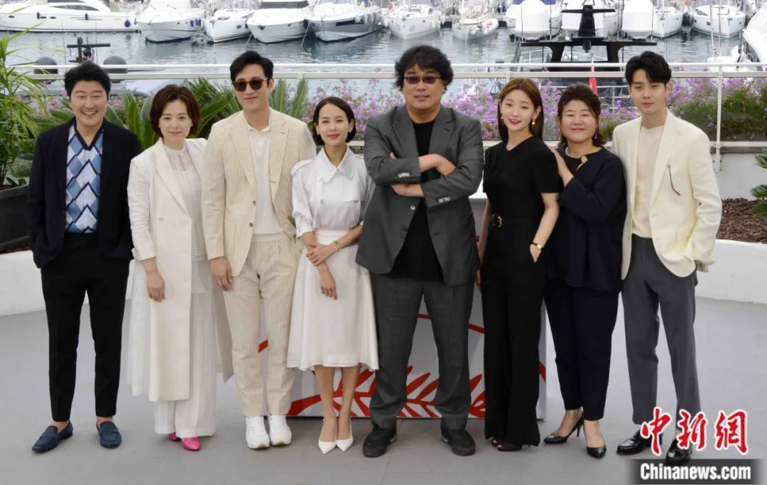 韓國影片《寄生蟲》主創(chuàng)團(tuán)隊亮相第72屆戛納電影節(jié)。李洋 攝