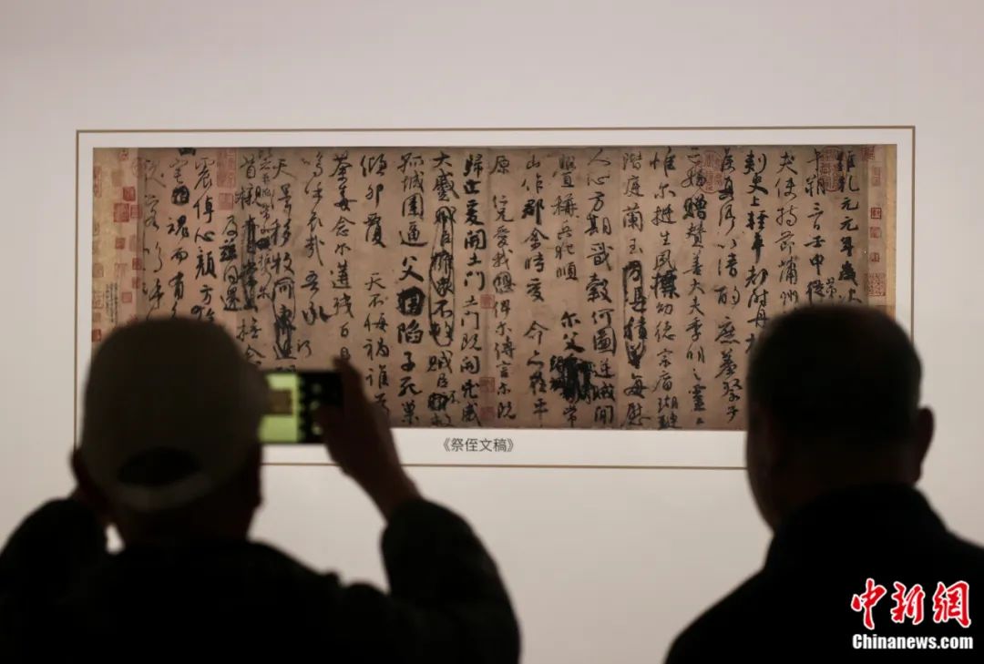 北京,參觀者觀賞顏真卿《祭侄文稿》(復(fù)制品)。易海菲 攝