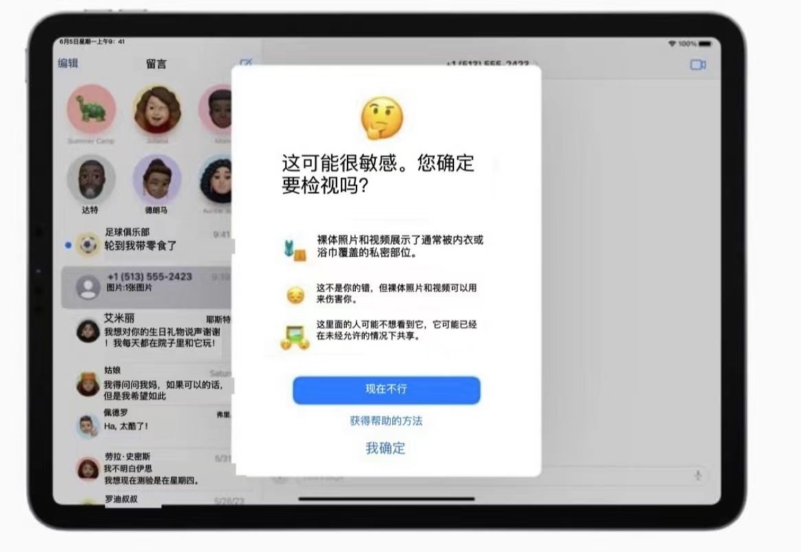 蘋果官網(wǎng)顯示,敏感內(nèi)容警告幫助成人用戶避免意外看到通過信息App、隔空投送、FaceTime通話視頻留言等收到的裸體圖片與視頻。與通信安全一樣,敏感內(nèi)容警告所處理的所有圖片和視頻均在設(shè)備端完成。