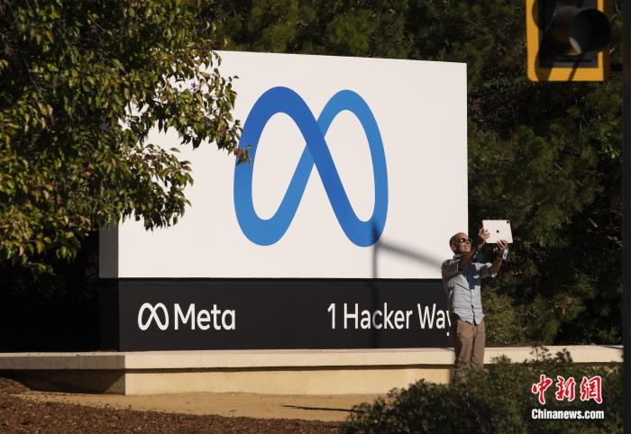 美國(guó)社交網(wǎng)絡(luò)巨頭Facebook公司(臉書(shū))更名為Meta(元宇宙),位于美國(guó)加利福尼亞州門洛帕克的元宇宙公司總部的新標(biāo)識(shí)吸引市民拍照留念。劉關(guān)關(guān) 攝