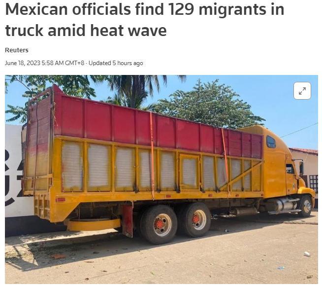 據(jù)報(bào)道,移民當(dāng)局表示,他們在一輛卡車內(nèi)發(fā)現(xiàn)了這些移民,事發(fā)地近日正遭受熱浪侵襲,當(dāng)天的室外溫度已達(dá)到45攝氏度。