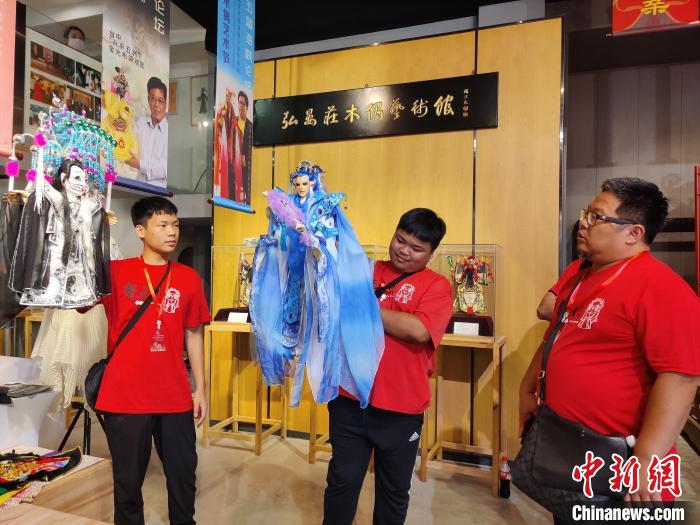 陳鵬安接受中新社記者采訪時說,自10歲開始學(xué)金光布袋木偶戲,至今已有近8年時間,課余時間與它為伴?!拔业陌职忠彩菑氖逻@個行業(yè)的,從小就喜歡看他表演。現(xiàn)在,我想從他的手上接過這個接力棒?!?/p>