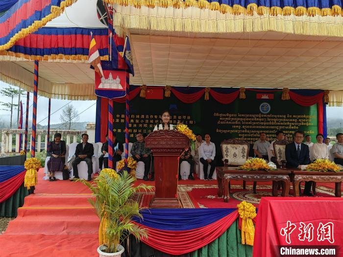 中新社金邊6月19日電 (記者 楊強(qiáng))當(dāng)?shù)貢r(shí)間6月18日,瀾湄合作專項(xiàng)基金“瀾湄國家典型小流域綜合治理示范(三期)”項(xiàng)目俄勒塞村成果移交儀式在柬埔寨國公省莫邦縣舉行。中國駐柬埔寨大使館公使銜參贊趙海燕、柬埔寨國公省省長密杜娜·布通以及當(dāng)?shù)馗鹘缑癖?00余人出席。