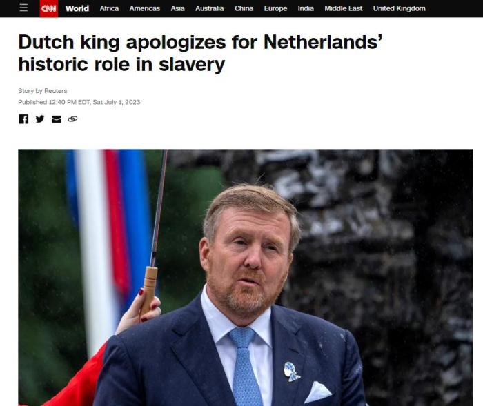 據(jù)美國有線電視新聞網(wǎng)(CNN)報(bào)道,荷蘭國王威廉-亞歷山大當(dāng)天出席了紀(jì)念荷蘭廢除奴隸制160周年的儀式,并作出了上述表態(tài)。