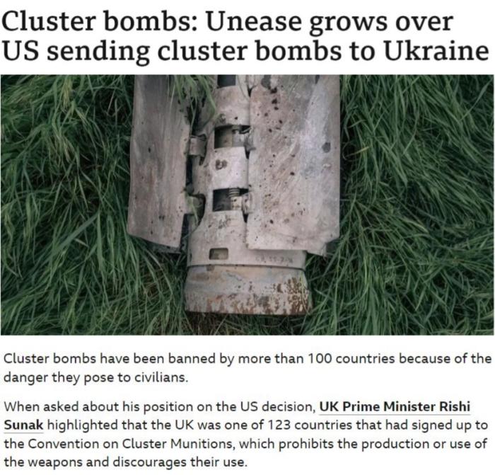 △英國廣播公司:集束彈藥因其對(duì)平民構(gòu)成的長期風(fēng)險(xiǎn),已被全世界上百個(gè)國家禁用。就連一向積極軍援烏克蘭的英國,也“不鼓勵(lì)”美國提供這種大殺傷力武器。