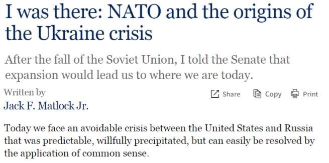 △美國昆西負(fù)責(zé)任治國研究所網(wǎng)站:美國最后一任駐蘇聯(lián)大使馬特洛克曾撰文感嘆,“我們今天正面臨一場原可避免的危機(jī)。這是一場可被預(yù)測(cè)、也的確曾被預(yù)測(cè)、卻又被蓄意促成的危機(jī)”。