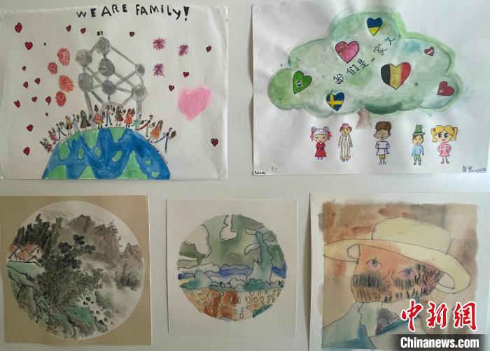 從北京天安門到比利時地標建筑原子球塔,從中國大熊貓到梵高畫像,孩子們的筆觸雖稚嫩,卻處處傳遞中西方文化的交融交匯。