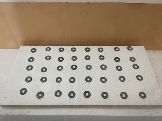 張騫出使西域?qū)κ澜缥拿鞯陌l(fā)展產(chǎn)生了深遠(yuǎn)影響,這是陳列在張騫紀(jì)念館內(nèi)的古絲綢之路上商旅使用的古錢(qián)幣。新華社記者 葉昊鳴 攝